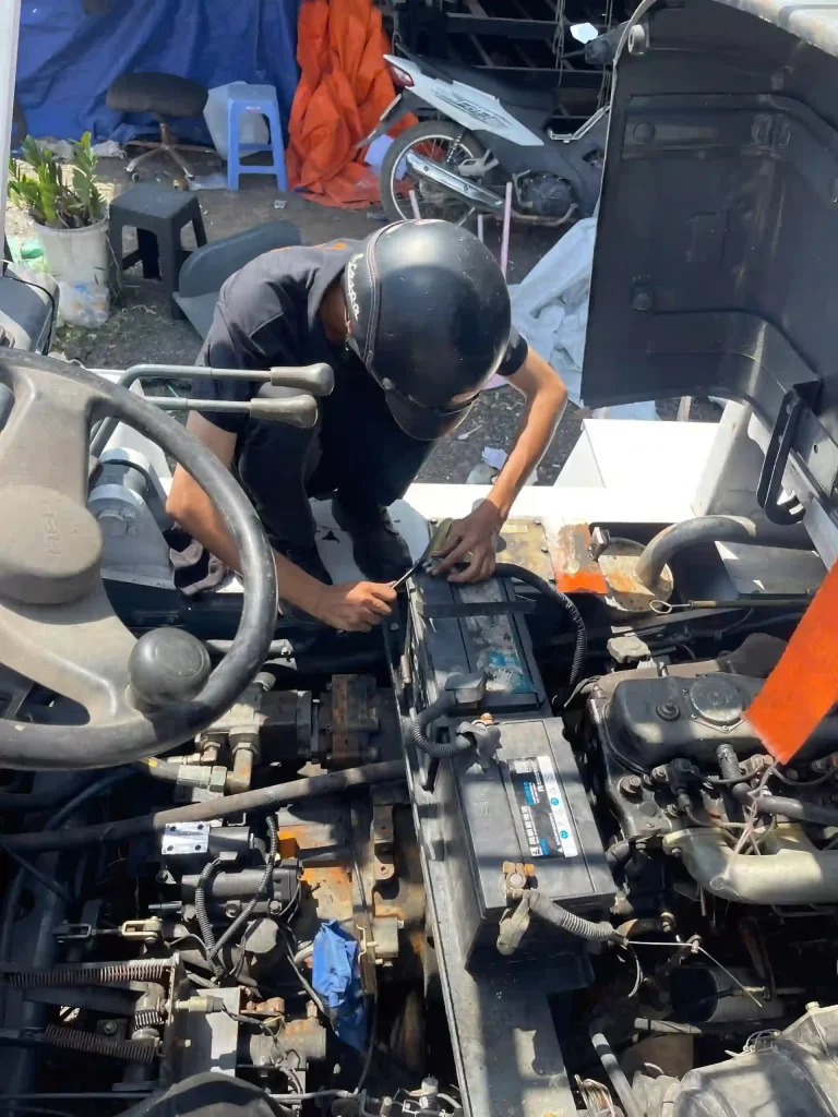 Về chúng tôiĐội ngũ kỹ thuật viên tay nghề cao, nhiều năm kinh nghiệm trong sửa chữa và bảo trì xe nâng dầu & điện. Chẩn đoán chính xác, xử lý nhanh chóng, đảm bảo thiết bị vận hành ổn định.